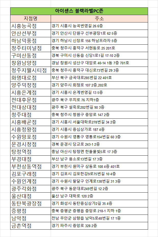 주소: 아이센스 블랙라벨PC존 (아래 매장정보확인)