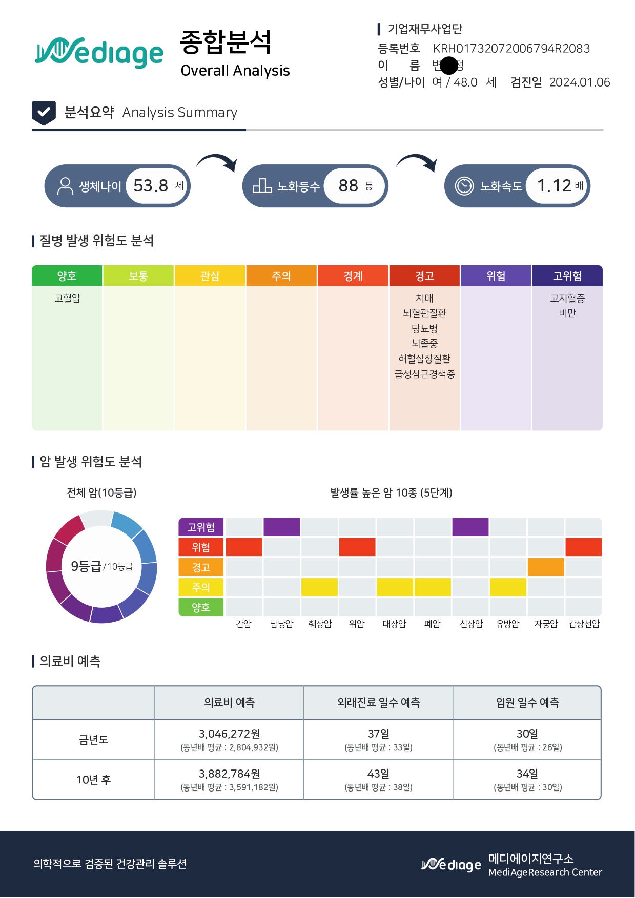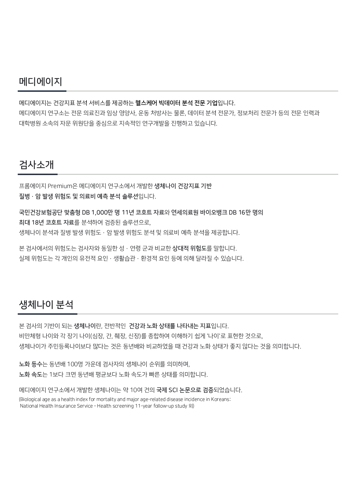 상품명: 건강지표 예측분석 생체나이 건강지표 기반 질병/암 발생 위험도 및 향후 예상질병 예측 분석 (포스팅X)